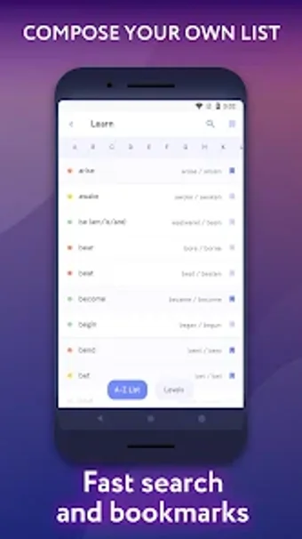 Denna app innehåller också ett stort antal exempel på oregelbundna verb. Exemplen är uppdelade i fem nivåer. Den första nivån innehåller ett mycket enkelt exempel, den andra nivån innehåller exempel med ett eller två oregelbundna verb, och så vidare.